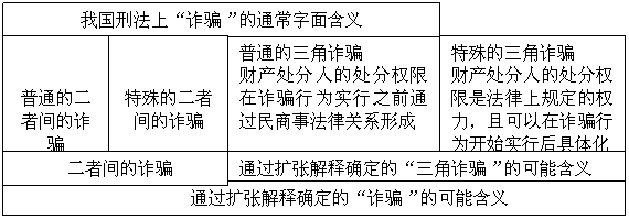 (四)诉讼欺诈是否包含在“三角诈骗”的通常字面含义之中——扩张解释的提出